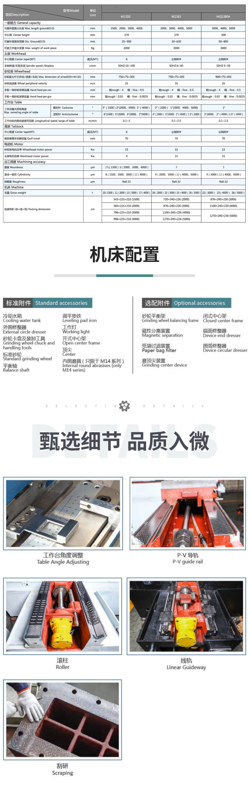 Cylindrical Grinder M13 series This machine tool is suitable for grinding the surface of a cylindrical or conical rotating body with IT6-IT7 precision, suitable for single-piece small batch and batch production workshops; the left and right guide rails adopt P-V structure, and are scraped by high-precision manual scraping , so that the whole series of products have high precision and high stability. Classic operating mechanism, simple, safe and reliable.